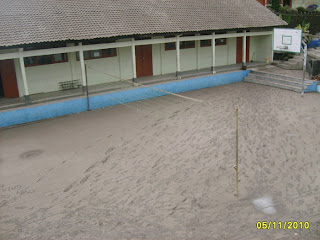 Suasana Lapangan basket dan Jalan Raya Wadaslintang tertutup Abu Vulkanik Merapi